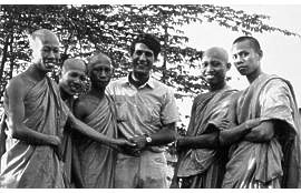 Nella foto lo vediamo a Tay Ninh accanto ad alcuni religiosi Cao Dai nel 1969. La sua esistenza è stata avventurosa, e breve poiché il rientro nella natia Italia gli avrebbe riservato incomprensioni e amarezze, che l’avrebbero spinto nel ’77 al suicidio. La nota del curatore della mostra Vittorio Morelli ci dà una chiave di lettura della sua vita e opera.