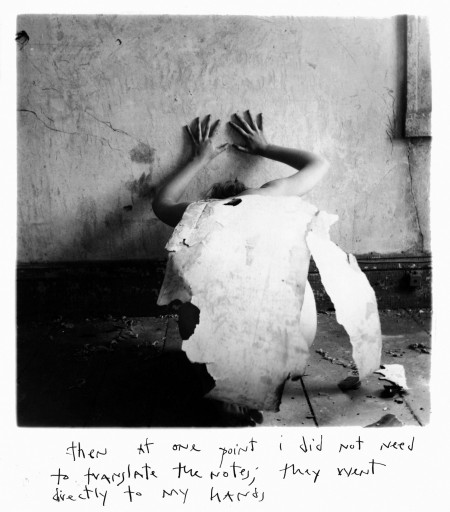 Sono immagini forti e intense, quelle di Woodman. Frequentissimi, gli autoscatti si mescolano ai ritratti spersonalizzati di altre modelle (in particolare l’amica Sloan Rankin), il cui corpo pare preso in prestito per impersonare suoi alter ego. Il bianco e nero, proposto in una forma dall’apparenza al tempo stesso materica ed evanescente, sottolinea un’atmosfera di misteriosa introspezione, dove la figura umana è ridotta ad una bidimensionalità palesemente senza peso, e aspira a confondersi con l’ambiente spesso squallido e fatiscente.